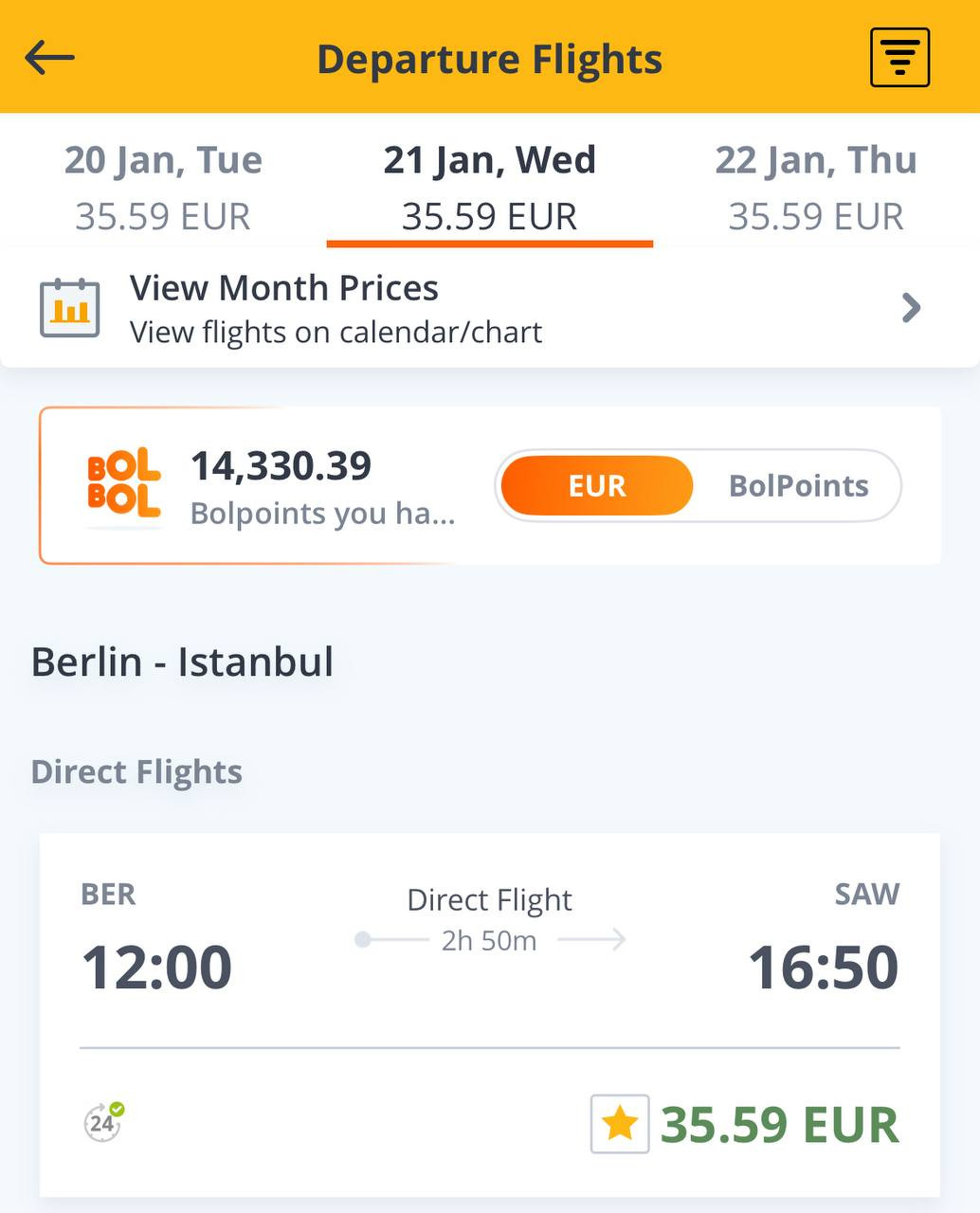 Пример бронирования Берлин-Стамбул за 36 евро в одну сторону:
