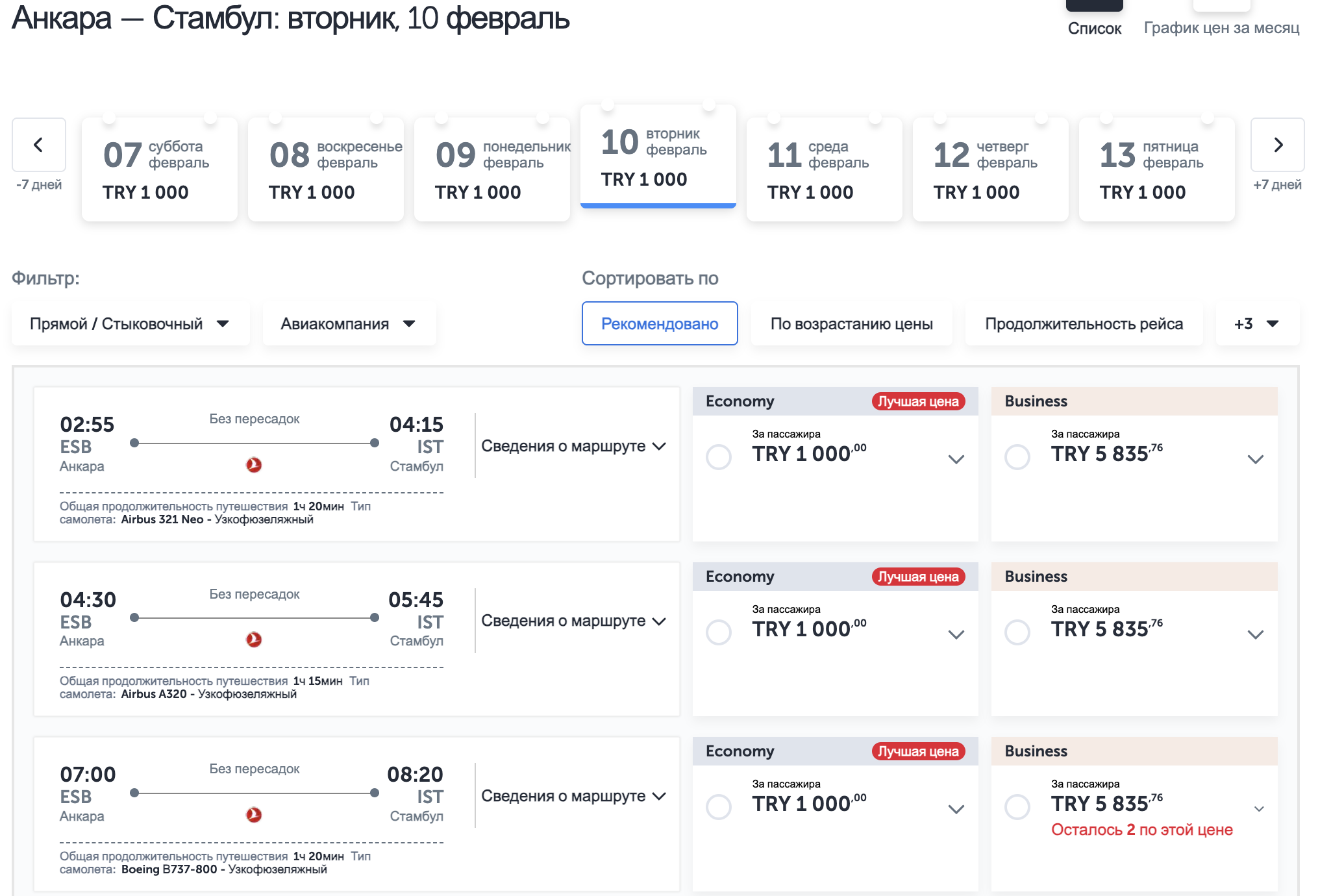 Пример бронирования билетов Анкара-Стамбул за 1000 турецких лир (21 евро):