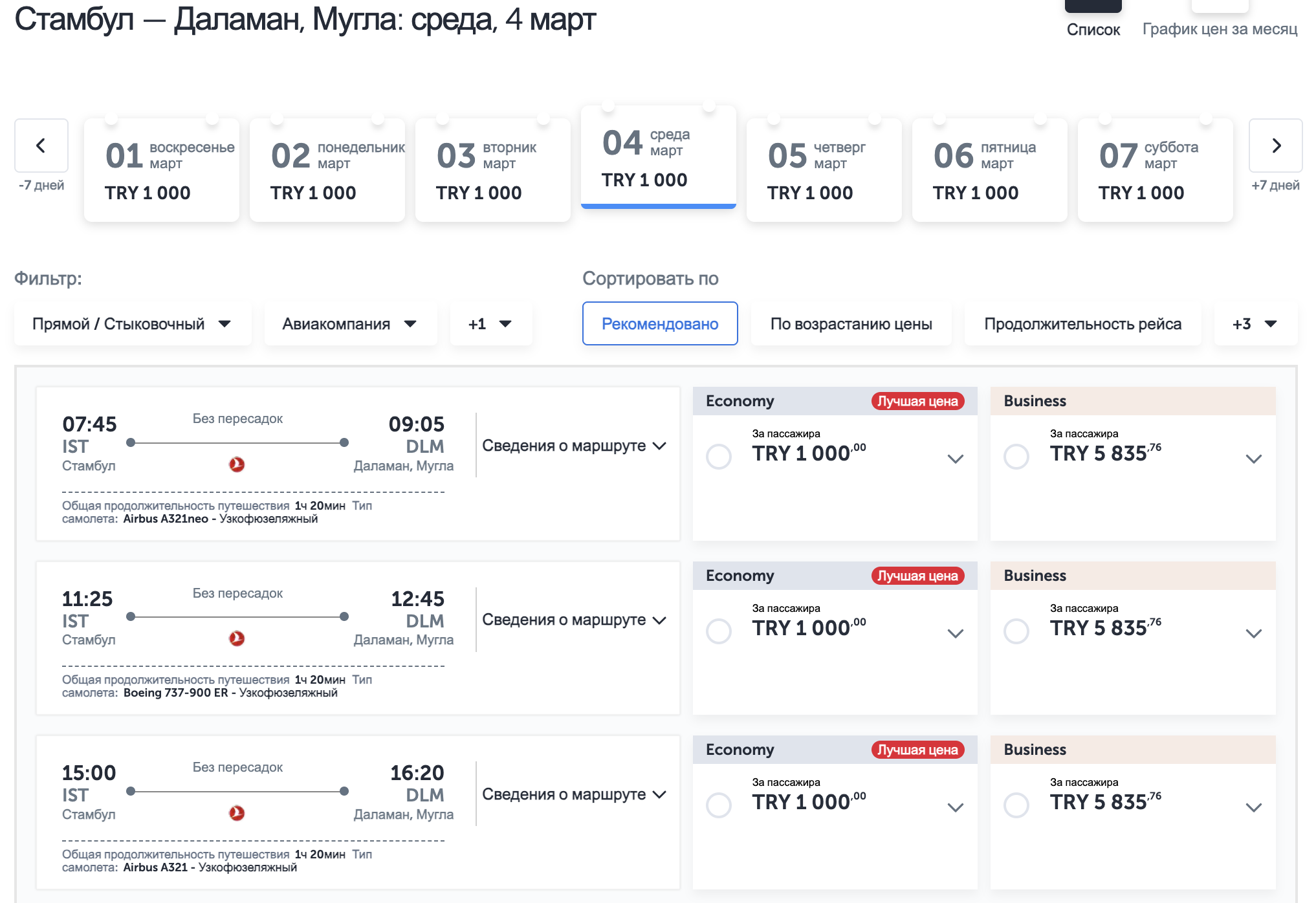 Пример бронирования билетов Стамбул-Даламан: