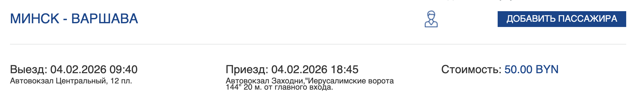 Пример бронирования билетов Минск-Варшава со скидкой:
