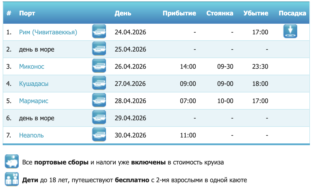 7-дневный круиз из Рима в Неаполь кругом через Миконос, Кушадасы и Мармарис в этом месяце.