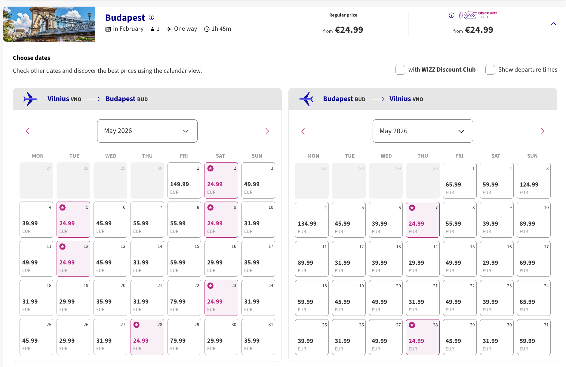 Проверить даты и перейти к покупке можно через сайт Wizz Air или через skyscanner.